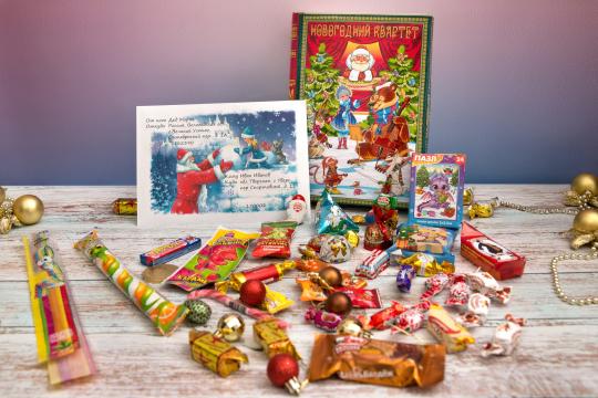 Предметов 13: Конверт, Книжка (по возрасту), Пазл с новогодней тематикой 54 детали, (ДОСТАВКА ВХОДИТ В СТОИМОСТЬ!), Раскраска формата А3, Письмо от Дедушки Мороза, Новогодние наклейки, Сладкий подарок (500гр), Обратное письмо для Дедушки Мороза, ВИДЕО В ПОДАРОК, Грамота поздравительная, Оберточный пакет, Красивая подарочная упаковка с тиснением "Зимушка-Зима с Дедом Морозом"