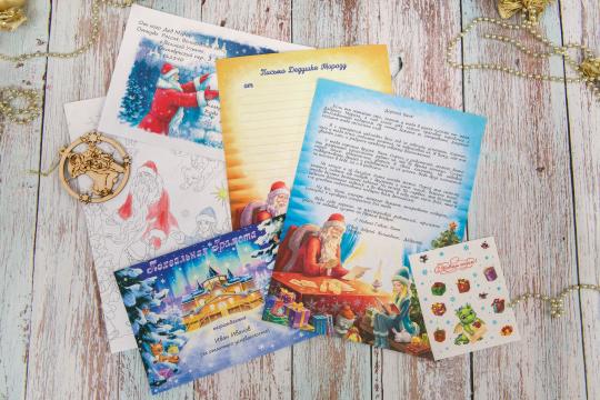 Предметов 6: Конверт, Раскраска формата А3, Письмо от Дедушки Мороза, Новогодние наклейки, Обратное письмо для Дедушки Мороза, Грамота поздравительная